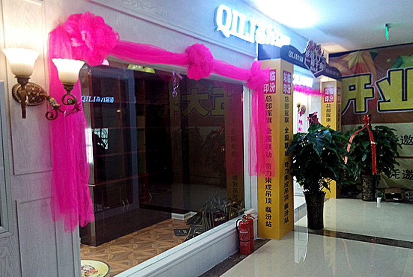 全新的臨汾店,內外張燈結彩、火紅一片。鑲嵌“奇力吊頂”碩大字樣的巨型拱門,彰顯“集成吊頂十大品牌”的品牌魅力!家裝建材業廠商們的齊襄聚賀,為臨汾新店的崛起助威吶喊!奇力“美式風尚”吊頂的重裝上陣,不僅再次領導了臨汾天花吊頂業界的潮流走向,甚至影響了臨汾整個裝修業界的風格取向,更豐富了臨汾群眾居室締造的魅力選擇、增強了家居生活的幸福感。