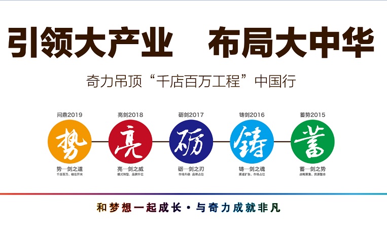 奇力吊頂成立十五年來,始終以穩中求進的發展步驟,推動著行業和自身發展。2015年,奇力仍將終端建設列為整年工作目標的重點。尤其在“引領大產業.布局大中華——‘千店百萬工程’中國行”計劃的實施中,對于終端的各項扶持,幫助各加盟商在最短的時間擴大銷售規模,提升經營利潤,進而成就“百萬大商之道”。
